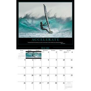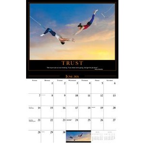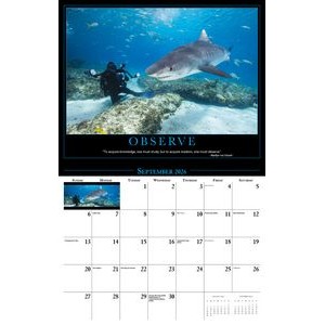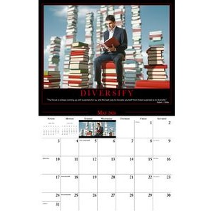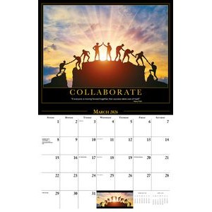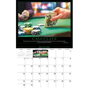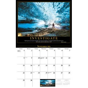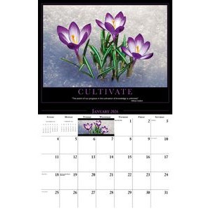 This Galleria Calendar Collection features 13 different images, an information bar that includes unique facts about the subject matter, date pad containing USA and Canadian holidays. Calendar measures 10 5/8″x 18 1/2″ open.