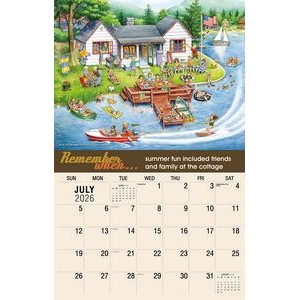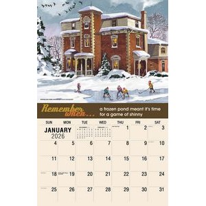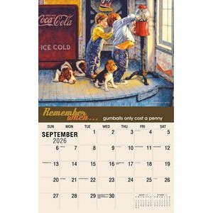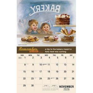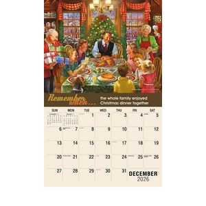 This Galleria Calendar Collection features 13 different images, an information bar that includes unique facts about the subject matter, date pad containing USA and Canadian holidays. Calendar measures 10 5/8″x 18 1/2″ open.